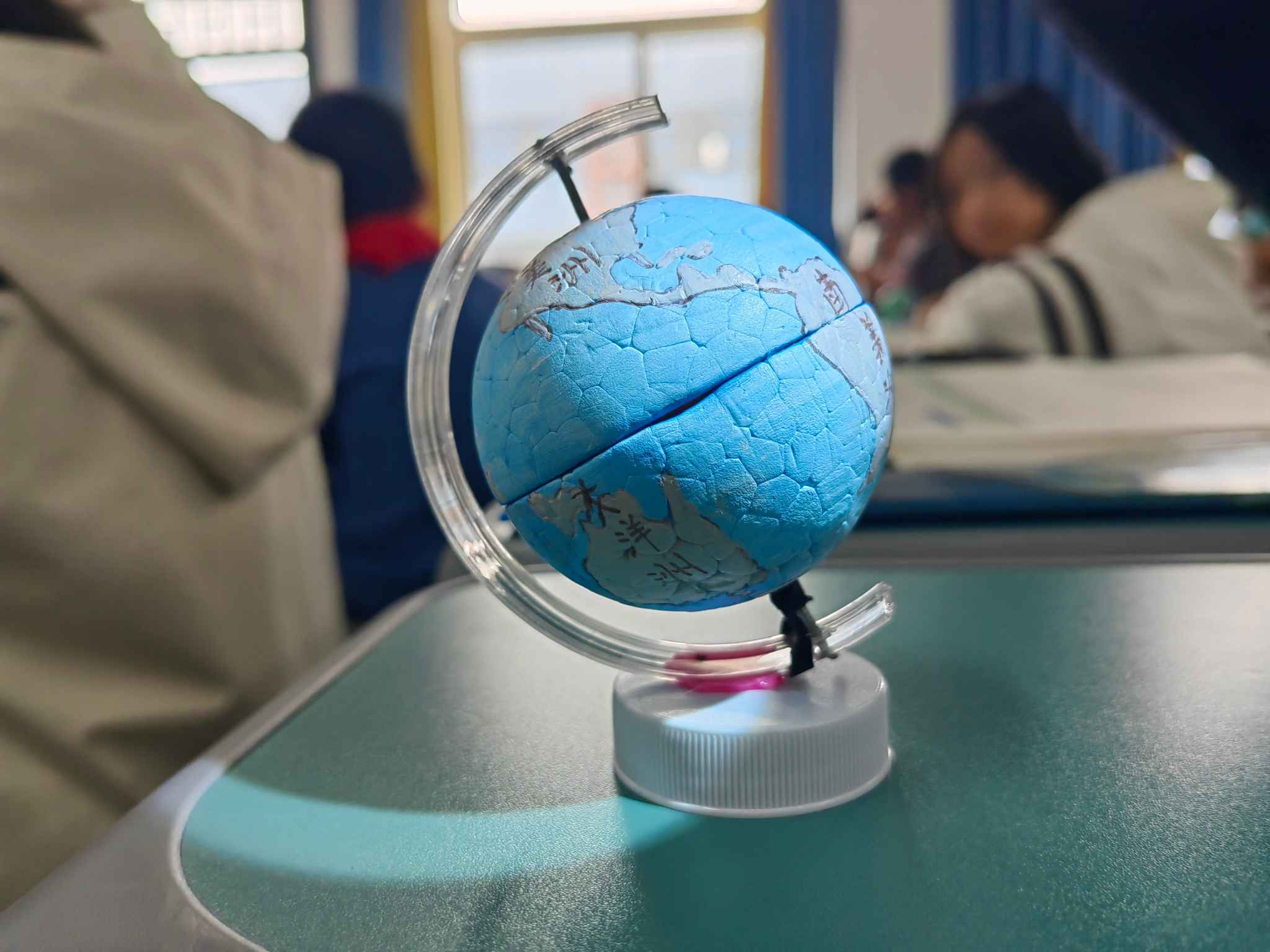 地球仪表面的海陆轮廓是难点。学生们很厉害