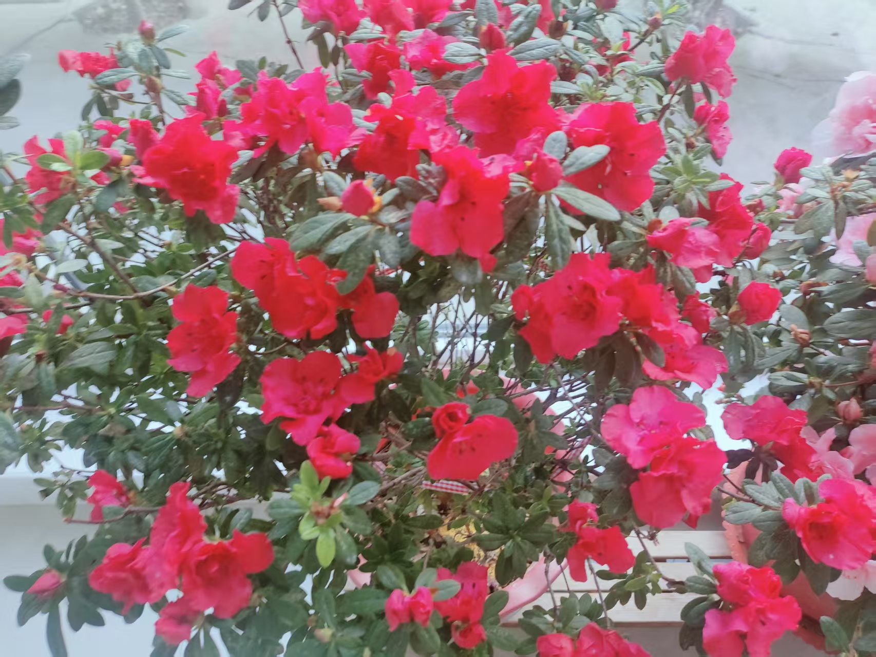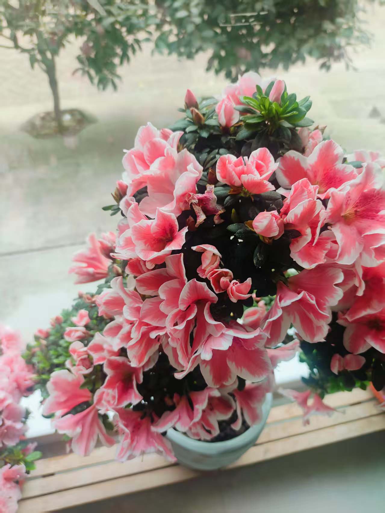 以前喜欢花,但不会养,经常养着养着就不了了之,这几年愈发的喜欢这些花花草草,我觉得它们是使我快乐的源泉,取之不竭用之不尽,给了我很多的快乐,也渐渐的让我体会到养花的乐趣,也感悟了很多。我认为养花就和我们的工作是一样的,既要进行呵护,还要有新鲜感,每年过年之前我都会买一盆。粉杜鹃是去年买的,红色的杜鹃是前面买的,今年入手了造型杜鹃及芍药。杜鹃每年是秋季弄进屋里,春节弄到院里,夏天怕晒着还