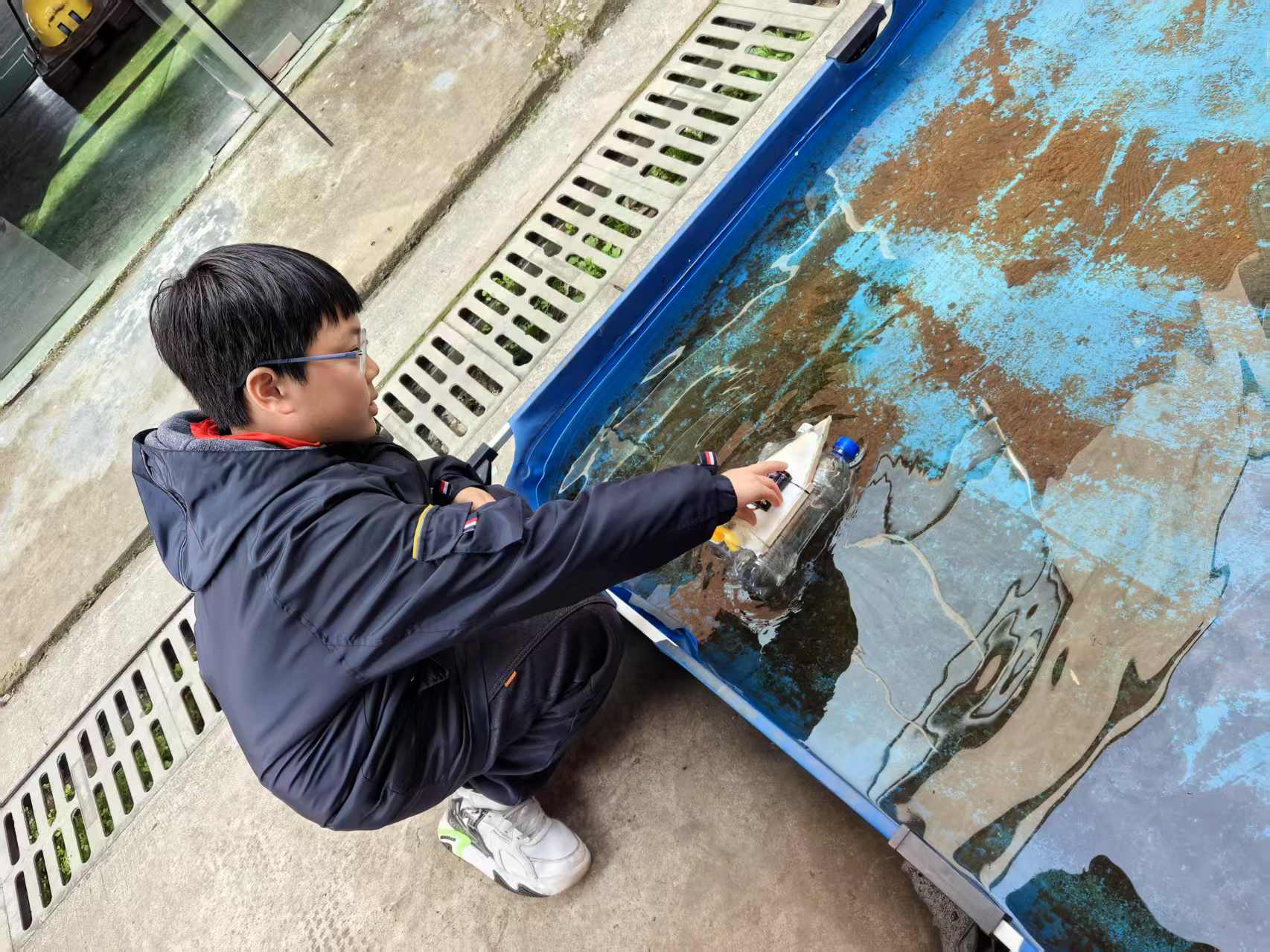 进入制作环节,学生们利用塑料瓶、纸板、木棒等材料动手实践。小组内分工协作,裁剪、粘贴、组装……遇到材料固定不牢、结构失衡等问题时,他们或查阅资料,或相互探讨,不断尝试改进。例如,某小组的小船因底部过重沉没,成员们通过调整材料分布、增加浮力结构,最终让小船成功漂浮。