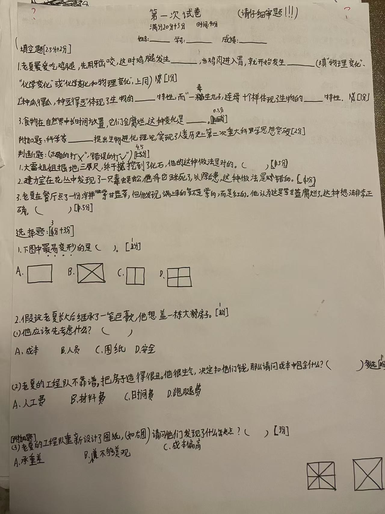 3.发现善良温馨的一面:出题中学生会根据自己考试中常犯的错误,在试卷中做温馨提示,或做醒目标注,既是提醒同伴也是警醒自己。
