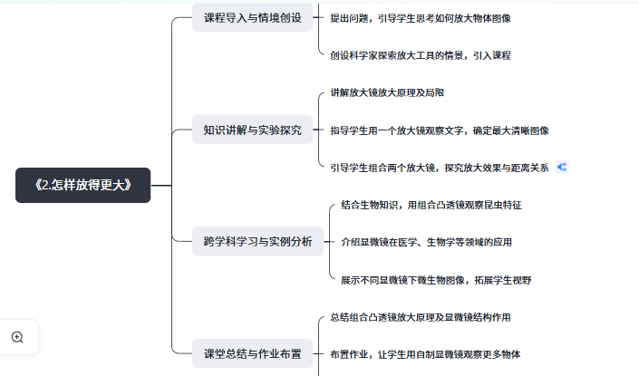 生成教学大纲后,就进入到教学活动设计环节啦。这里会以思维导图的形式呈现教学活动的各个部分,比如课程导入与情境创设、知识讲解与实验探究等。我们可以根据自己的教学思路和实际需求,对这些内容进行调整和完善,让教学活动更加符合课堂实际。