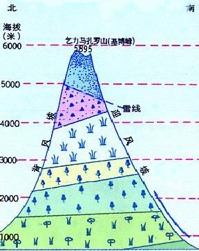 主要原因是:南坡海拔高度低,垂直地带性显著;
