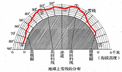 启示:通过雪线高低,有无雪线,判断纬度的高低