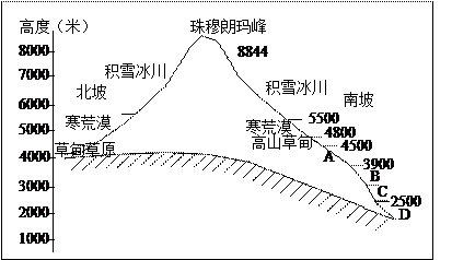 ①珠峰北坡与南坡相比,缺乏 自然带,