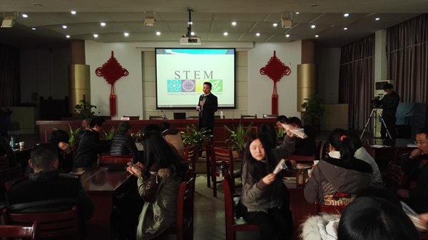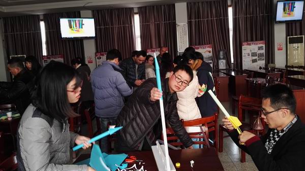 下午,崇德小学陈梅娟老师、高桥镇中心小学俞国兴老师和毛衫城小学钱云峰老师分别介绍了各校在拓展性课程方面的研究和成果。当紧张的听课和交流让有些老师有些疲倦时,嘉兴市小学科学名师吴建伟老师精彩的“STEM课程”讲座,则让老师们又兴奋起来了。吴老师先介绍了“STEM课程”的含义:即science(科学),technology(技术),engineering(工程),math(数学)。然后让老师们分小组合作进行了用“筷子搭廊桥”、“制作纸火箭”、“用塑料管演奏”等活动,让老师们在参与、体验中慢慢明白了科学需要创新、需要结合其他课程来发展和学习的先进教育理念。