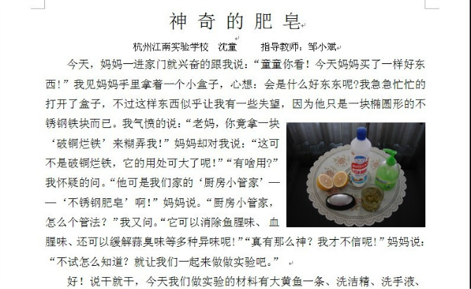 唉,平时看到地上的垃圾似乎特别多,中饭以后,我去那个垃圾桶里看了一下,塑料袋里只有一点点吃剩的鱼骨头,等到晚饭过后,那袋里也没增加多少,我拿出那杆宝贝小秤,把装有厨余垃圾的塑料袋放到秤盘上,提起提纽,滑动秤砣……怎么只有这么一点——18克。我怕这秤不准确,叫妈妈来看一下,妈说就只有这些重量,不会差的。我还称了几个塑料袋,它们的重量是6克,两个啤酒瓶盖,是3克,还有一个纸盒子,重量是13克。第一天的收获却是那么少,有点令我失望。
