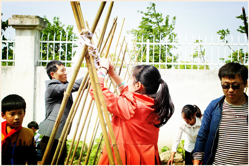 3.搭建棚架,看,我们的妈妈、爸爸、爷爷多给力。