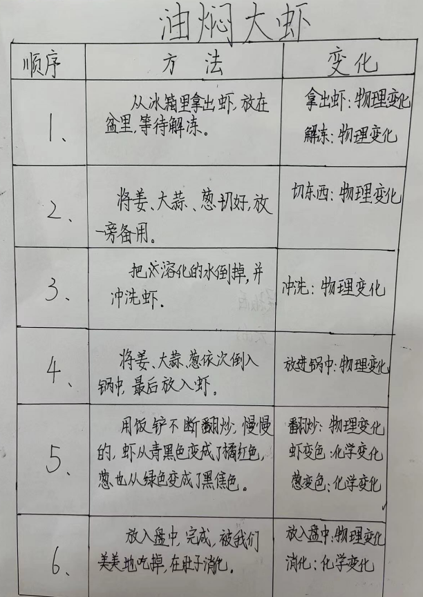 怎么分享呢?我没有具体模板的 ,就是让孩子们参与一项美食的制作,判断每个步骤发生的是化学变化还是物理变化