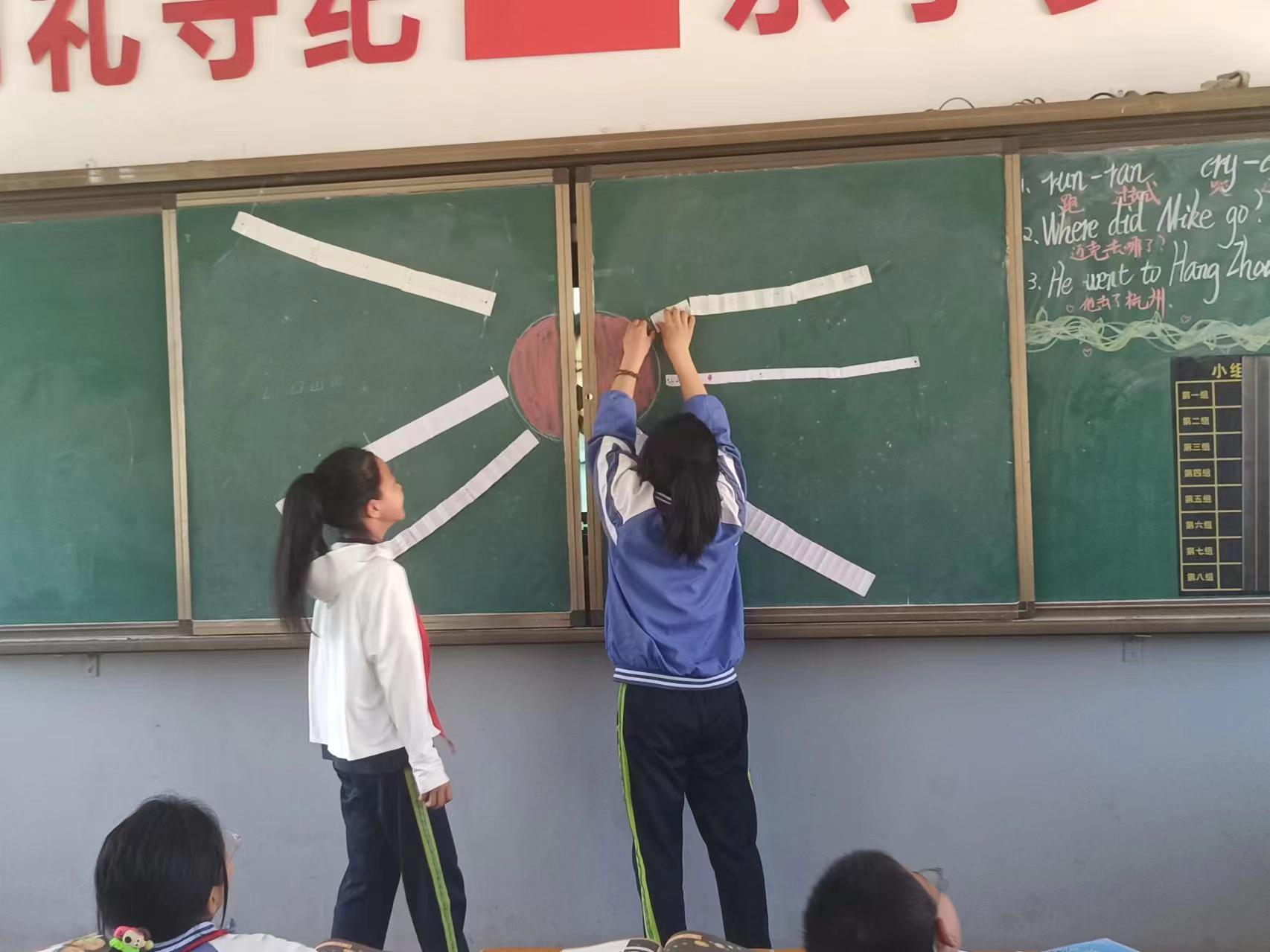 六年级学生以小组为单位,用三张纸条,利用行星与太阳距离远近的数据,制作行星位置模型。