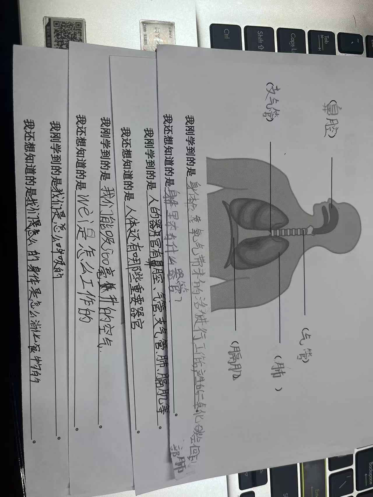 例如在上感受我们的呼吸这一课时,学生就提出了很多问题,比如膈肌有什么用?这个问题本节课就可以帮助孩子们解决到,呼吸有什么用?如何判断肺是否健康,身体里除了肺还有哪些器官?