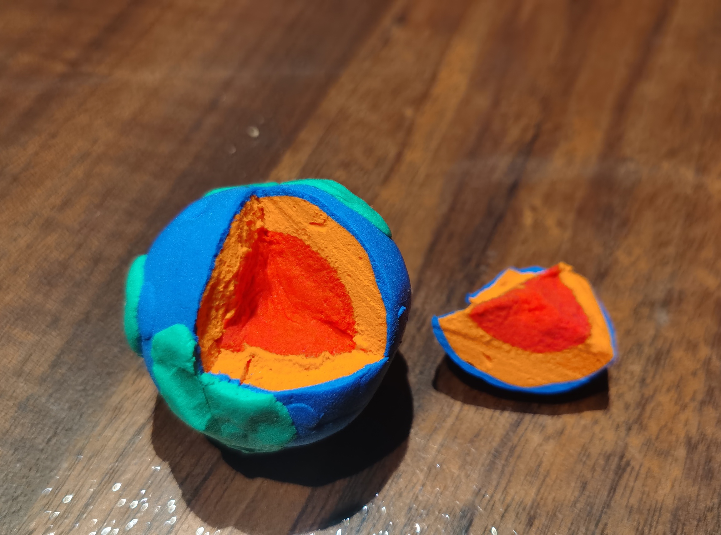 用橡皮泥或超轻粘土做地球结构模型可以用鱼线切割,可以减少因刀切带来的模型变形,混层。切割时还要注意模型的硬度,太软、太硬切出来的效果都不会很好~